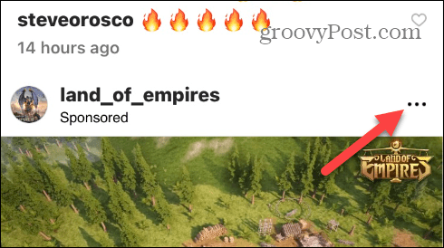 - Desplácese por su feed hasta que encuentre un anunciante (publicación patrocinada) que desea bloquear.