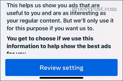- Después de hacer su selección, Instagram mostrará un mensaje de verificación que le informará que el servicio determinará si viola sus políticas publicitarias.