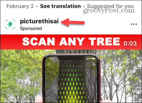 - Toque el nombre de la empresa o marca en la publicación patrocinada.